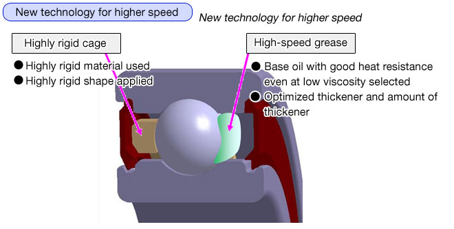 •Suppression of heat generated during high-speed rotation by adoption of a low-viscosity base oil with good heat resistance.