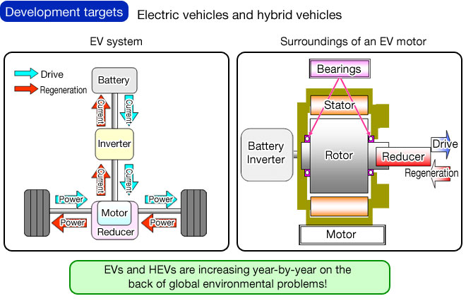 This product will contribute to the downsizing and greater efficiency of EV and HEV systems by achieving high-speed motor rotation (one million dmN).